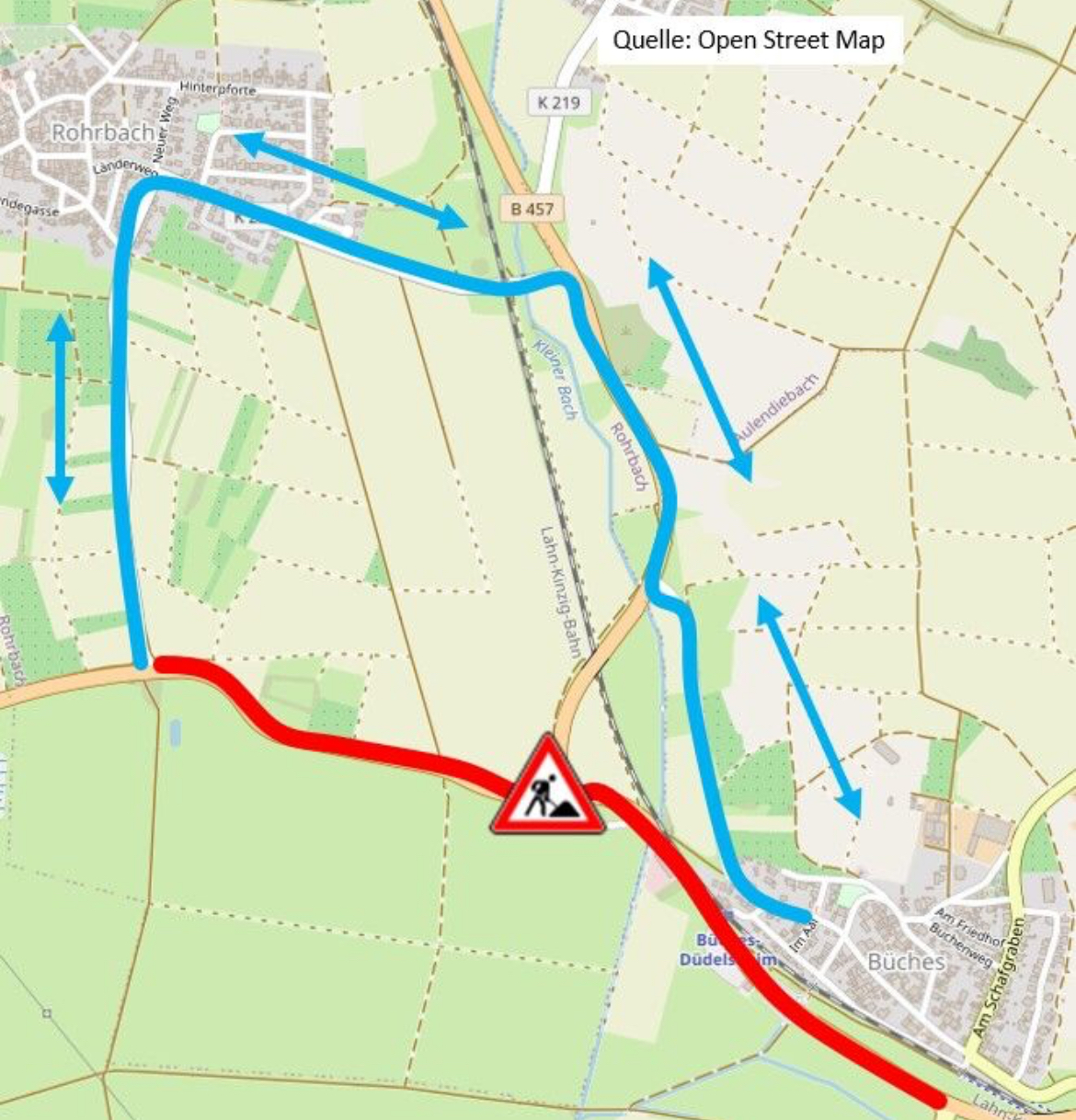 Wie HessenMobil mitteilt beginnt am 13. Oktober eine Fahrbahninstandsetzung im Kreisverkehr B 457/B 521 in Büches. Im Rahmen der Gewährleistung werden die aufgetretenen Fahrbahnschäden beseitigt und der Fahrbahnbelag wieder instandgesetzt. Um die Verkehrsbeeinträchtigungen so gering wie möglich zu halten, werden